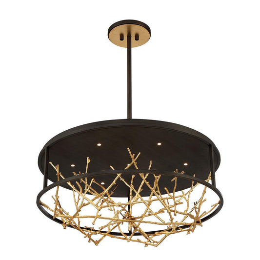 Eurofase Lighting Aerie 30" 7-Light Dimmable Integrated LED Round Bronze Open-Cage Framed Chandelier With Gold Free-Flowing Gilded Branch Accents