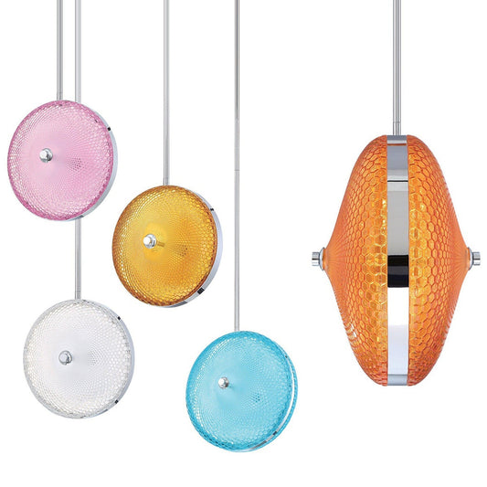 Eurofase Lighting Caledonia 13" Round Chrome Dimmable Integrated LED Pendant Light With Bright Candy Clear Honeycomb Glass Shade