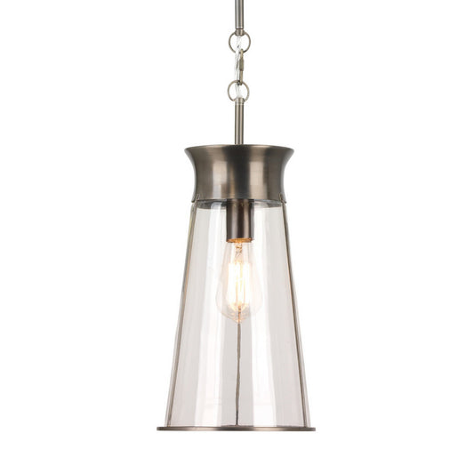 Jamie Young Nara 8" 1-Light Gun Metal Pendant Light With Clear Glass Tapered Shade