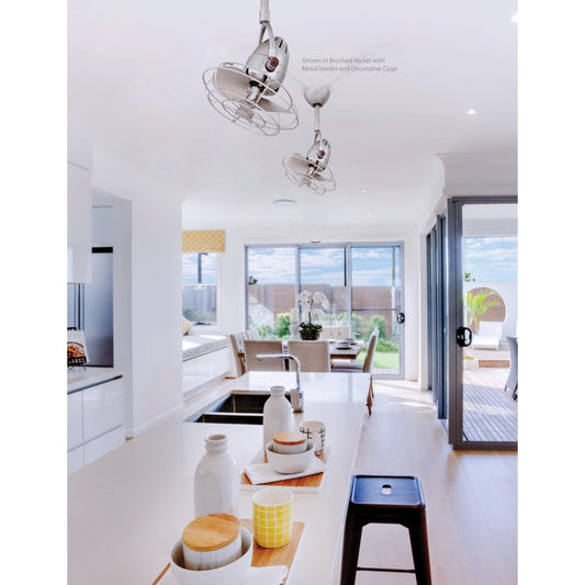 Matthews Fan Company Matthews-Gerbar Ar Ruthiane 46" Bullet-Shaped Rotational Ceiling Fan With 10" Downrod and Metal Blades in Brushed Nickel Finish With Damp Location Protection