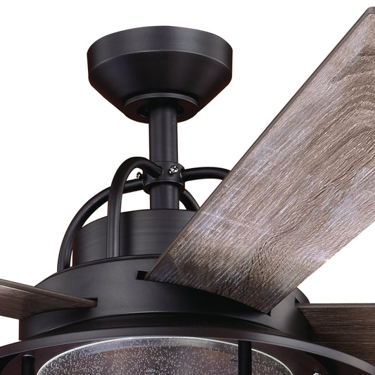 Vaxcel Charleston 56" 2-Light Bronze Farmhouse Indoor-Outdoor Ceiling Fan Light With Clear Seeded Glass Shade and 3-Speed Settings