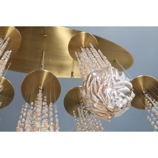 Eurofase Lighting Cascata 42" 7-light Oval Dimmable Halogen Bulb Polished Gold Chandelier With Clear Amber Crystal Glass Beading Shades