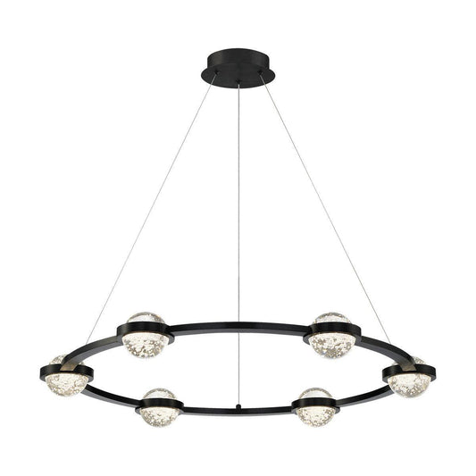 Eurofase Lighting Circolo 36" 6-Light Dimmable Integrated LED Black Round Chandelier With Seeded Glass Orb Shades