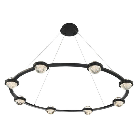Eurofase Lighting Circolo 48" 8-Light Dimmable Integrated LED Black Round Chandelier With Seeded Glass Orb Shades