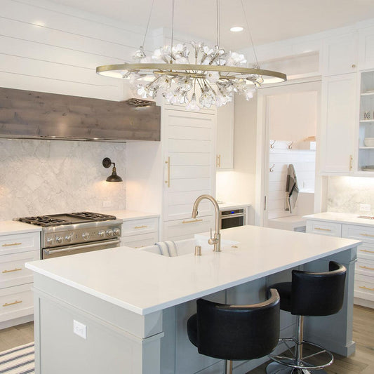 Eurofase Lighting Clayton 43" Dimmable Integrated LED Silver And Brushed Gold Oval Chandelier With A Bouquet Of Opal and Clear Glass Florets