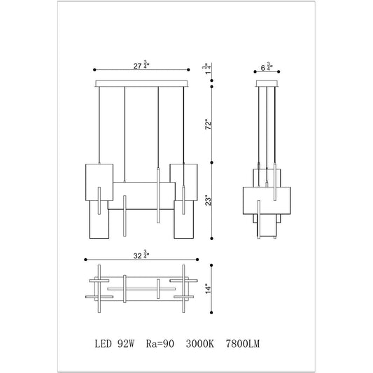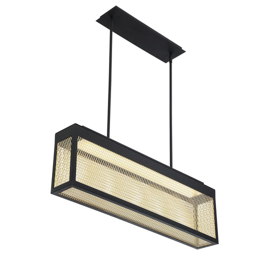 Eurofase Lighting Coop 36" Dimmable Integrated LED Metal Linear Sand Black Chandelier With Metal Gold Mesh Rectangular Shade