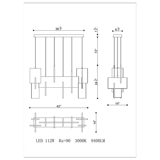 Eurofase Lighting Coburg 42" Extra Large Dimmable Integrated LED Metal Linear Gold Chandelier With White Acrylic Shades