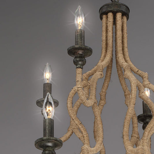 Vaxcel Breckenridge 31" 6-Light Bronze Rustic Antler Indoor Chandelier With Natural Rope Accent