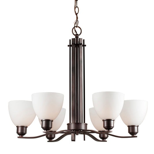 Forte Lighting Ade 28" 6-Light Steel Antique Bronze Chandelier With White Glass Shades