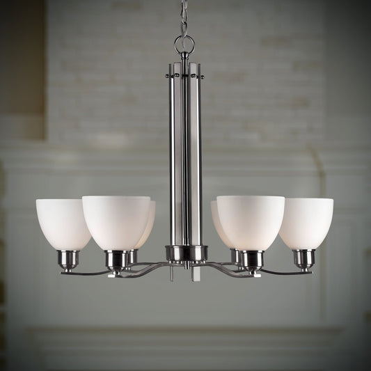 Forte Lighting Ade 28" 6-Light Steel Brushed Nickel Chandelier With White Glass Shades