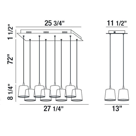 Eurofase Lighting Borto 13" 8-Light Dimmable Integrated LED Matte White Rectangular Chandelier With Matte White Shades