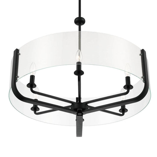 Eurofase Lighting Campisi 28" 6-Light Dimmable Incandescent Round Black Chandelier With Hand Blown Clear Glass Shade