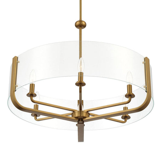 Eurofase Lighting Campisi 28" 6-Light Dimmable Incandescent Round Brass Chandelier With Hand Blown Clear Glass Shade