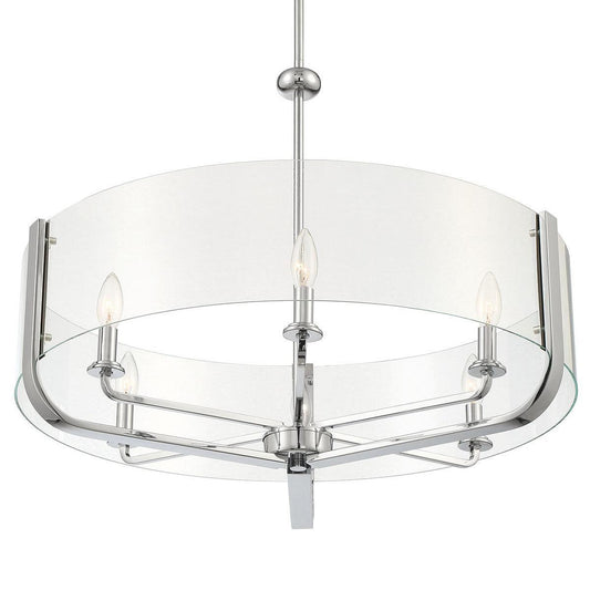 Eurofase Lighting Campisi 28" 6-Light Dimmable Incandescent Round Chrome Chandelier With Hand Blown Clear Glass Shade