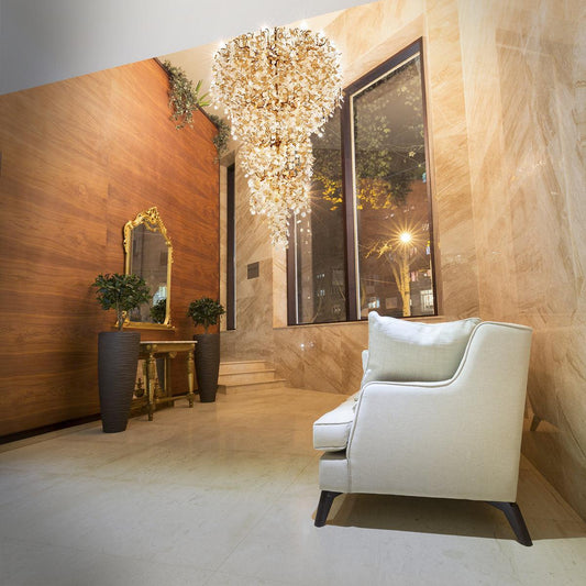 Eurofase Lighting Campobasso 47" 33-light Round Dimmable Halogen Bulb Gold Chandelier With Clear Amber Hand Pressed Round Glass Wafer Shades