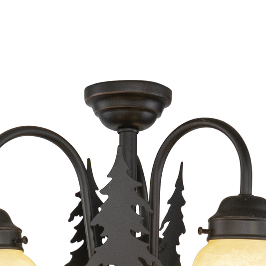 Vaxcel Bozeman 15" 3-Light Bronze Rustic Bear Interior Mini Chandelier With Amber Flake Glass Shades