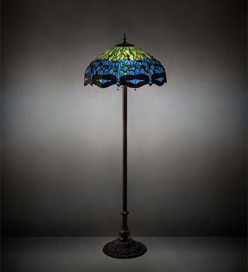 Meyda Lighting Tiffany Hanginghead Dragonfly 70021 62" 3-Light Mahogany Bronze Floor Lamp With Green & Blue Shade Glass