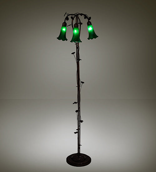 Meyda Lighting Tiffany Pond Lily 58" 3-Light Mahogany Bronze Floor Lamp With Green Shade Glass
