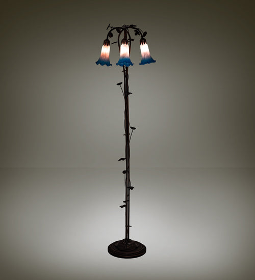 Meyda Lighting Tiffany Pond Lily 58" 3-Light Mahogany Bronze Floor Lamp With Pink & Blue Shade Glass