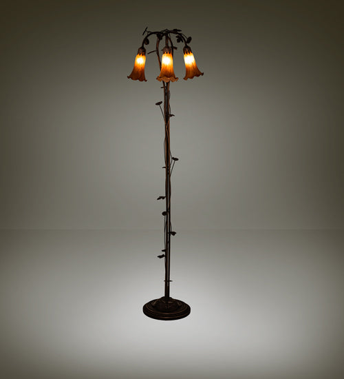 Meyda Lighting Tiffany Pond Lily 71881 58" 3-Light Mahogany Bronze Floor Lamp With Amber Shade Glass