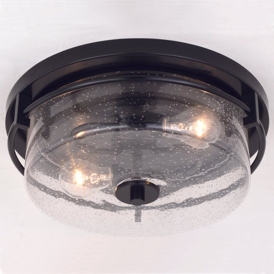 Vaxcel Addison 15" 2-Light Black Contemporary Flush Mount Ceiling Light With Seeded Clear Glass Shade
