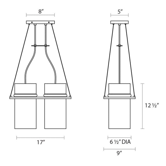 SONNEMAN Square Ring 2-Light Satin Black Glass Shade Rectangle Pendant Light