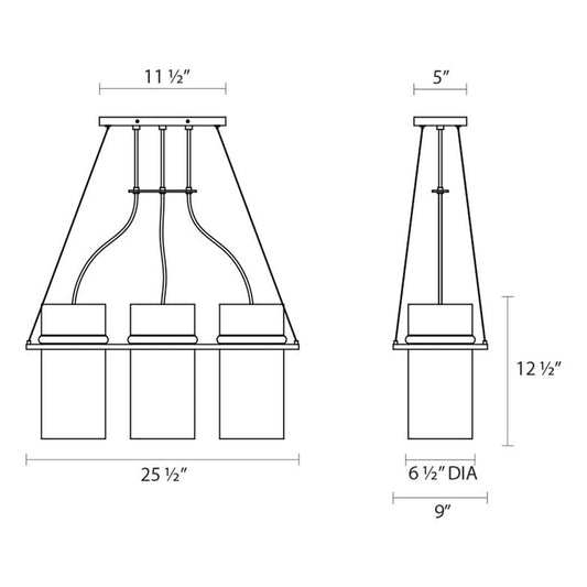 SONNEMAN Square Ring 3-Light Satin Black Glass Shade Rectangle Pendant Light