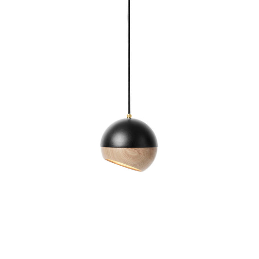 Mater Ray Medium Black Pendant Light With Adjustable Wooden Oak Shade