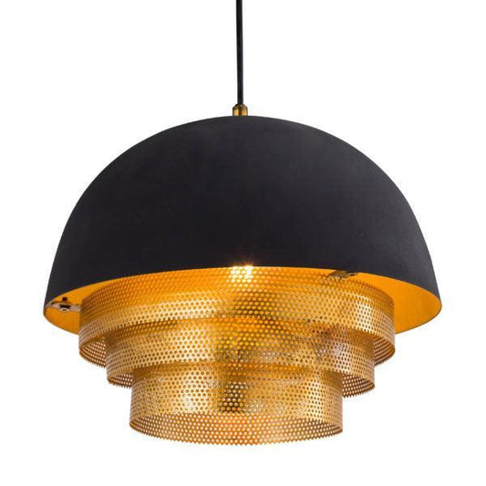 TOV Furniture Luxor Large Pendant Light With Matte Black Dome Shade and Three Tier Brass Rings