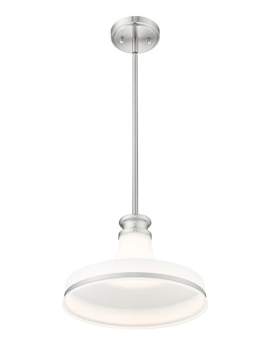Z-Lite Reznor 12" 1-Light Brushed Nickel Steel Frame Matte Opal Glass Shade Pendant Light