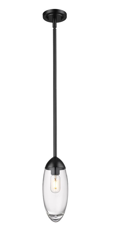 Z-Lite Arden 651P-ROD-MB 5" 1-Light Matte Black Iron Frame Clear Glass Shade Pendant Lighting
