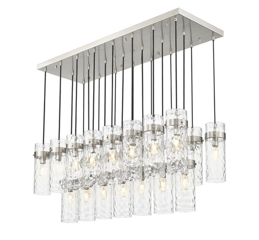 Z-Lite Fontaine 20" 23-Light Brushed Nickel Steel Frame Clear Waterglass Shade Linear Chandelier