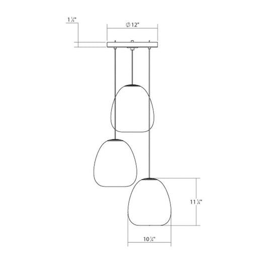 SONNEMAN Mela 3-Light LED Satin Black Glass With Frosted Acrylic Shade Chandelier