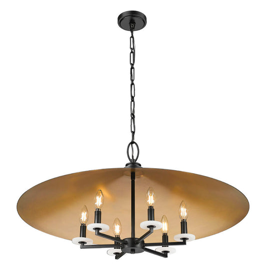 Z-Lite Rialto 32" 6-Light Candelabra Matte Black Steel With Signature Rubbed Brass Inner Shade Pendant Light
