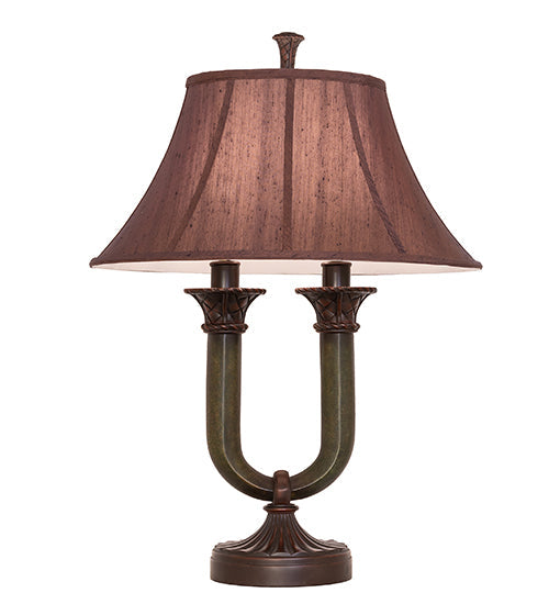Meyda Lighting Cypress 29" 2-Light Mahogany Bronze Table Lamp With Brown Fabric Shade