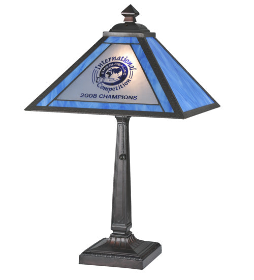 Meyda Lighting Personalized 23" Craftsman Brown EMS Global Inc Table Lamp With Blue & White Shade Glass
