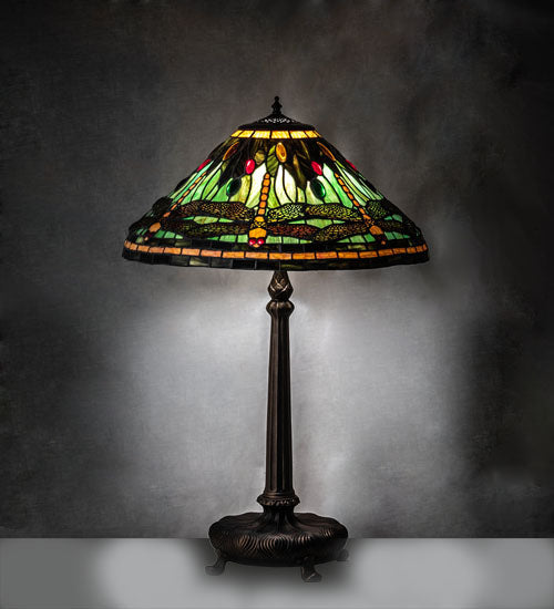 Meyda Lighting Tiffany Dragonfly 31" Mahogany Bronze Table Lamp With Multi-Colored Shade Glass