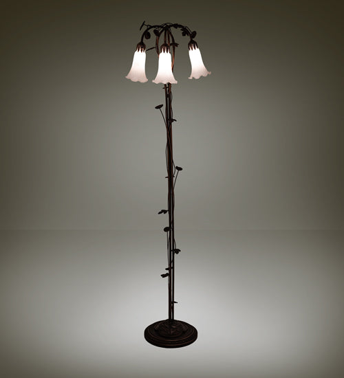 Meyda Lighting Tiffany Pond Lily 58" 3-Light Mahogany Bronze Floor Lamp With White Shade Glass
