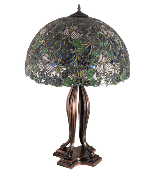 Meyda Lighting Trillium & Violet 30" 3-Light Mahogany Bronze Table Lamp With Multi-Colored Shade Glass