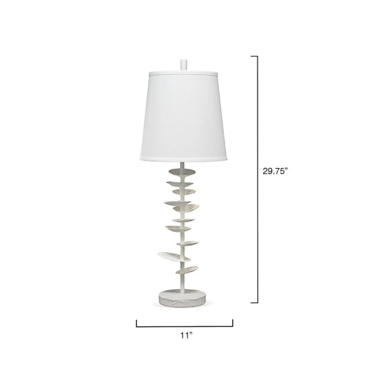 Jamie Young Petals 11" x 30" 1-Light White Plaster Table Lamp With Off-White Linen Shade