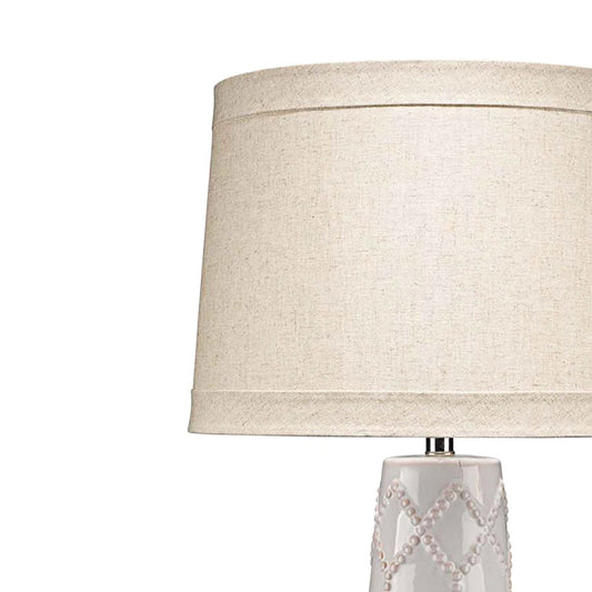 Jamie Young Hobnail 17" x 35" 1-Light Off-White Ceramic Table Lamp With Linen Tapered Shade