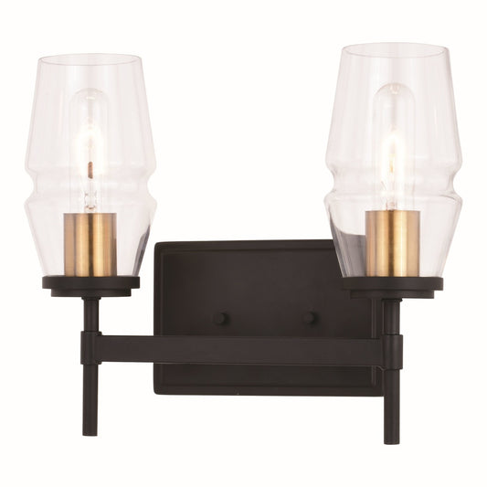 Vaxcel Warren 2-Light Black and Brass Mid Century Modern Bathroom Vanity Wall Fixture Clear Glass