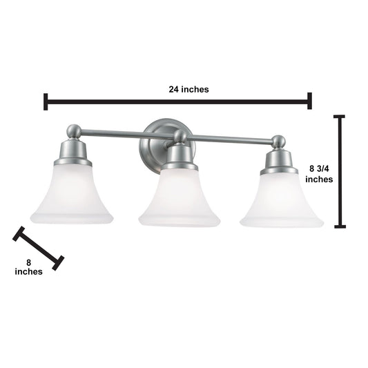Norwell Lighting Elizabeth 10" x 24" 3-Light Brushed Nickel Vanity Sconce With Flared Glass Diffuser