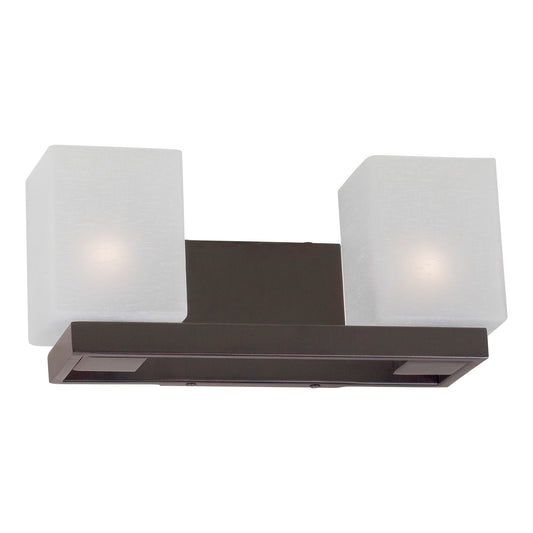 Forte Lighting Bloq 14" 2-Light Steel Antique Bronze Bath Bar With White Linen Glass Shades