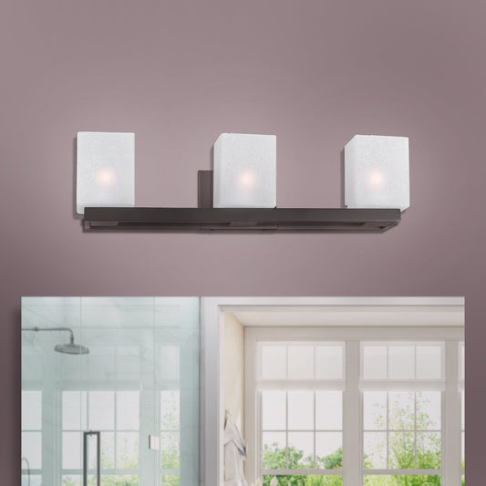 Forte Lighting Bloq 24" 3-Light Steel Antique Bronze Bath Bar With White Linen Glass Shades