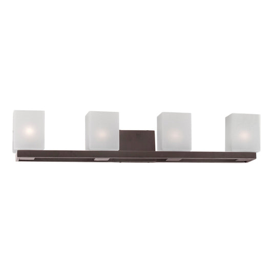 Forte Lighting Bloq 34" 4-Light Steel Antique Bronze Bath Bar With White Linen Glass Shades