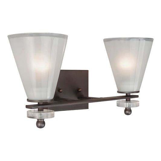 Forte Lighting Cyndy 18" 2-Light Steel Antique Bronze Bath Bar With Clear Outer & Sandblast Inner Glass Shades