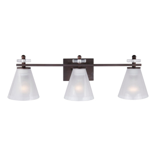 Forte Lighting Cyndy 26" 3-Light Steel Antique Bronze Bath Bar With Clear Outer & Sandblast Inner Glass Shades