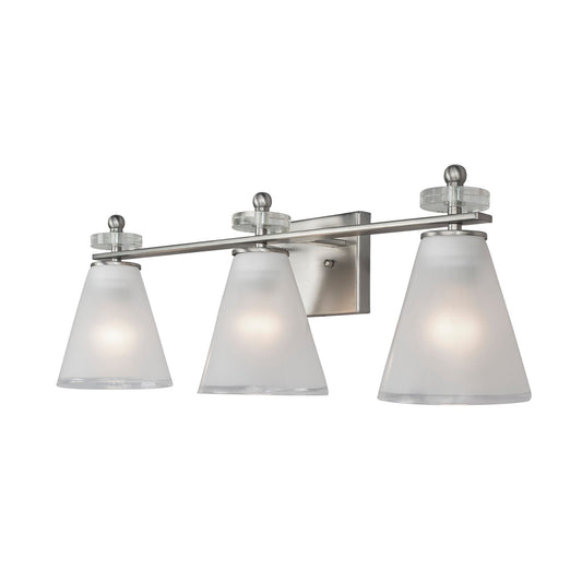 Forte Lighting Cyndy 26" 3-Light Steel Brushed Nickel Bath Bar With Clear Outer & Sandblast Inner Glass Shades
