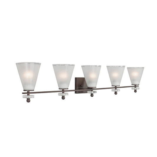 Forte Lighting Cyndy 46" 5-Light Steel Antique Bronze Bath Bar With Clear Outer & Sandblast Inner Glass Shades